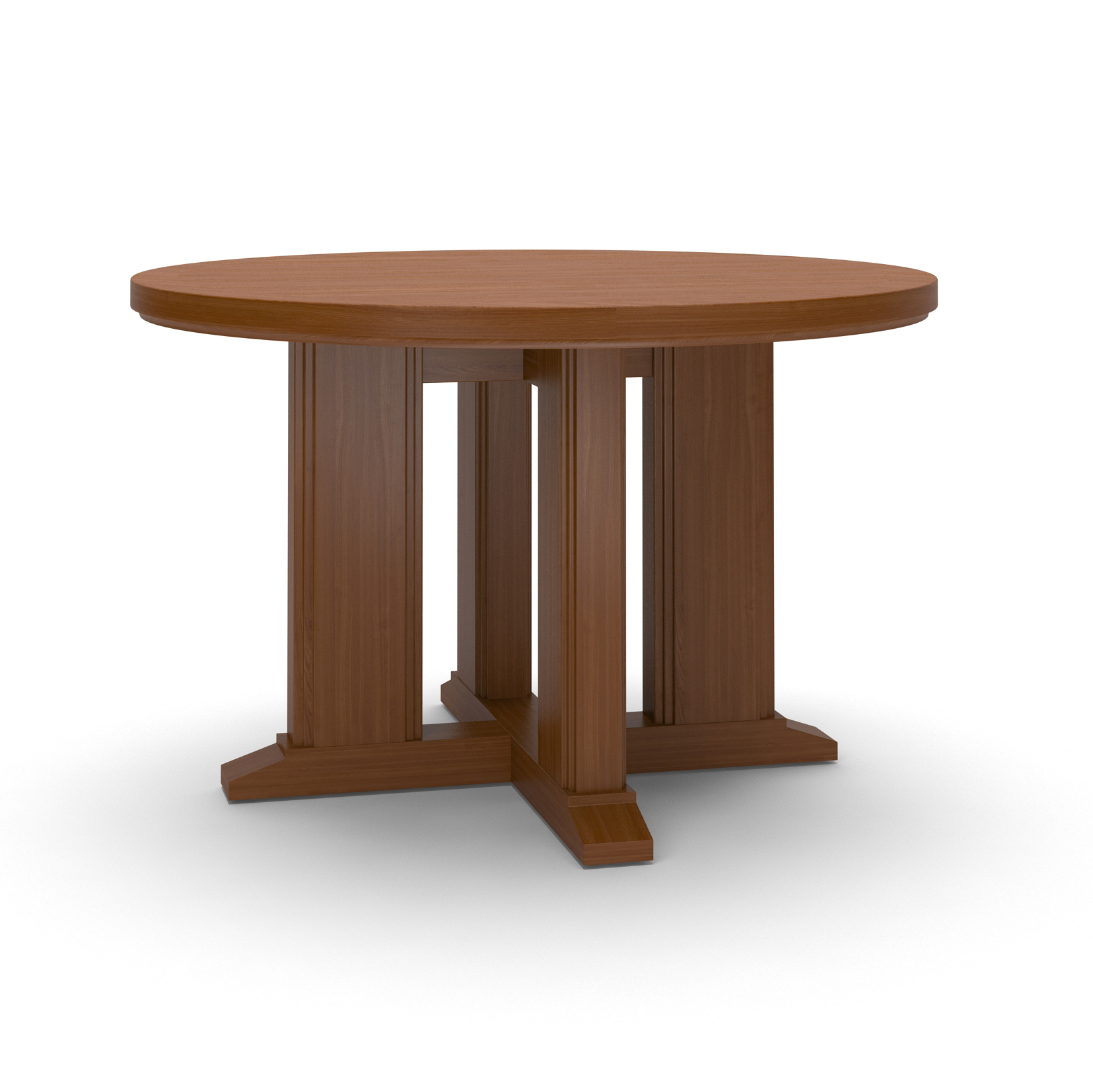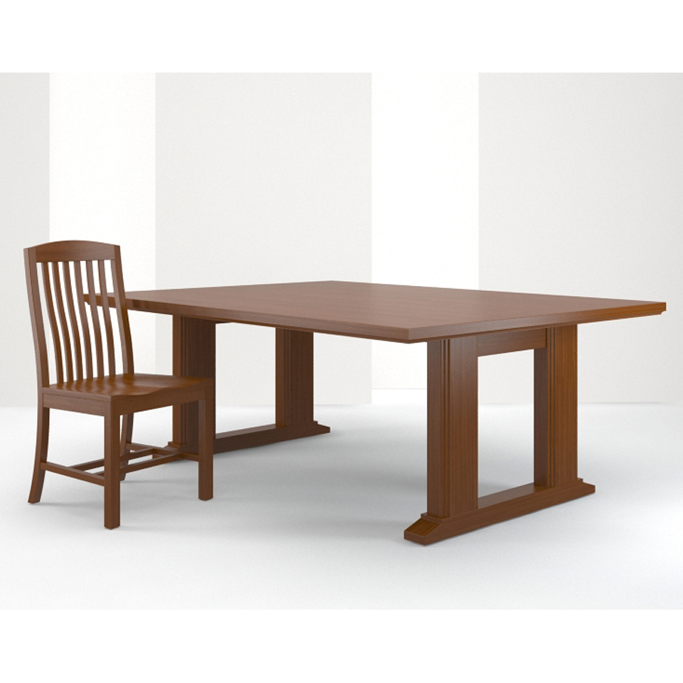 Solid wood trestle base with a stepped detail on the legs. Inset wood veneer top with a solid wood edge having a cove along the bottom edge. The DePaul Collection includes chairs, benches, study tables, carrels, and end panels.