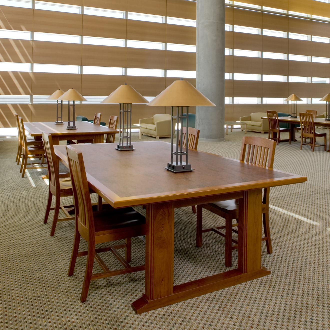 Originally designed for the DePaul University Law Library Project, the DePaul Collection emphasizes the inherent qualities of the wood grain, the elegance of designs simplicity, and the importance of craftsmanship.